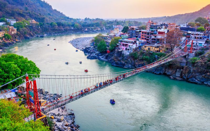Rishikesh is a city in India’s northern state of Uttarakhand, in the Himalayan foothills beside the Ganges River. The river is considered holy, and the city is renowned as a center for studying yoga and meditation. Temples and ashrams (centers for spiritual studies) line the eastern bank around Swarg Ashram, a traffic-free, alcohol-free and vegetarian enclave upstream from Rishikesh town.